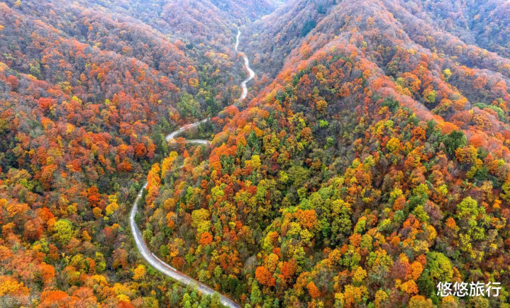 八百里秦川里既有北方的壮丽多姿,又有南方的婉约风光,道路曲折盘旋,10月中下旬-11月中旬,穿越彩林,赏秋自驾,风光极佳。