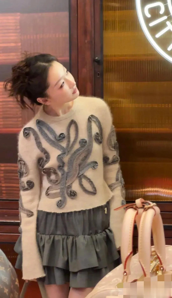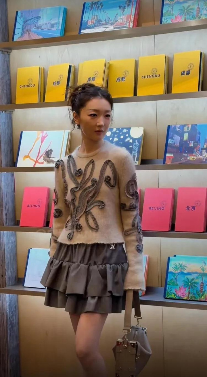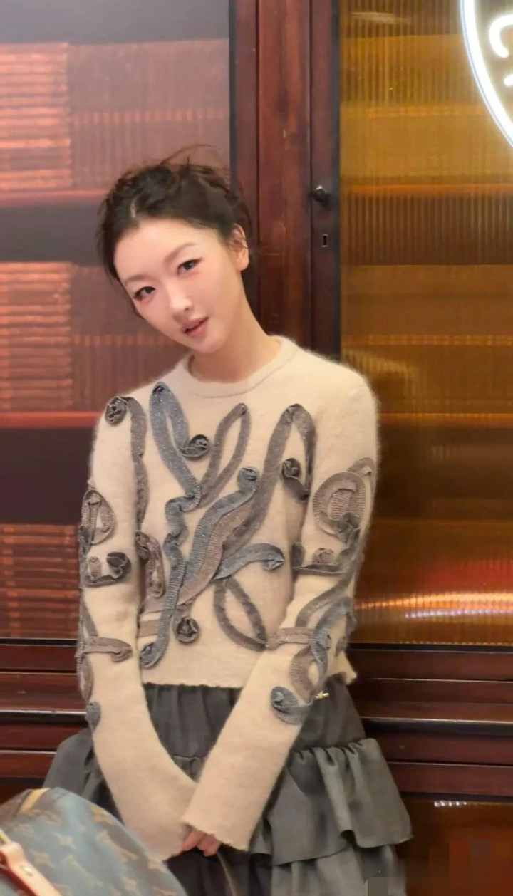 周冬雨现身LV活动, 拿小黄鸭凝视合影玩自嘲, 脸又瘦又小一点不垮