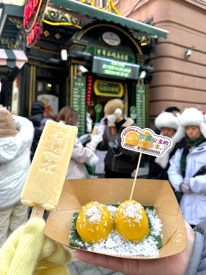 逛渴了吃上一马迭尔冰棍,体验一下,在零下20度严寒里,里外凉透的感觉,再尝一下北国特色的冰糖葫芦,酸甜脆爽。保你开胃过瘾。