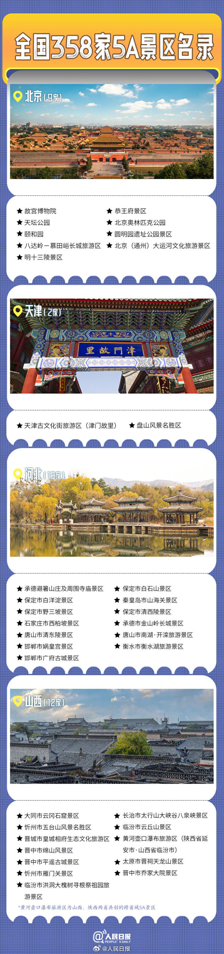 国庆出游必看! 358家5A级旅游景区名单来啦