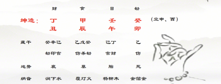 八字坤造:你生于丁丑年、甲辰月、壬午日、癸卯时(日空:申、酉);