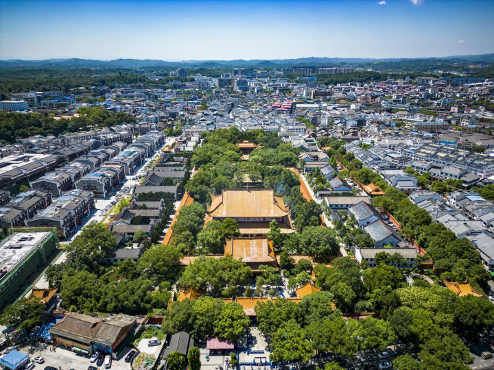 后经唐、宋、元、明、清六次大火和十六次修缮扩建,于清光绪八年(1882年)重建并形成近十万平方的规模,是中国南方最大的宫殿式古建筑群,目前是第六批国保单位。