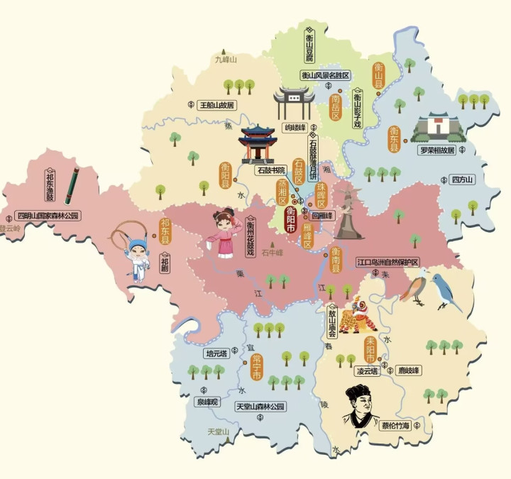 衡阳、别名雁城,位于湖南省中南部,地处湘江中游,因位于南岳衡山之南而得名。
