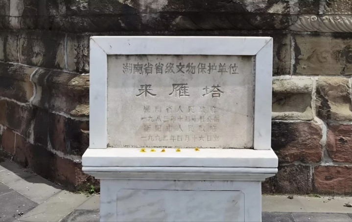 塔身砖石结构,共七层,模样沉稳,门额上“来雁塔”三个字,是清代彭玉麟的手笔。