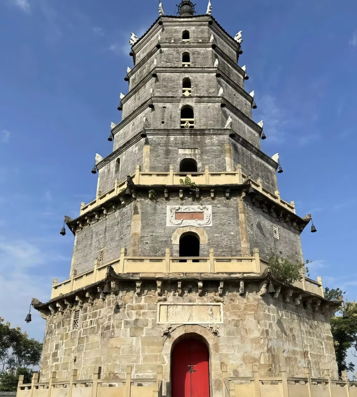 塔身也是七层八角,形态上仿佛是对岸古塔的回应,对了,目前它三塔之中唯一可以上去的一座,可俯瞰三江交汇。