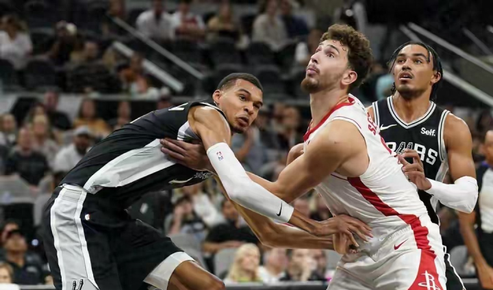 先说说申京和文班亚马这4次交手的具体情况,数据对比一眼就能看出谁更占优。第一次是2023年11月15号,火箭118-110赢了马刺。申京打了36分钟,18投10中,拿了26分12篮板5助攻,还有2抢断1盖帽,正负值+8。那场他一开始就找对了对付文班的节奏,低位拿球后靠脚步晃开文班,勾手命中率很高,还能拉到外线给队友传球,篮板也没让文班占到便宜。反观文班,34分钟里12投5中,得15分10篮板,虽然有4次盖帽,但低位对抗后终结不行,篮板也被申京压制,正负值-6。