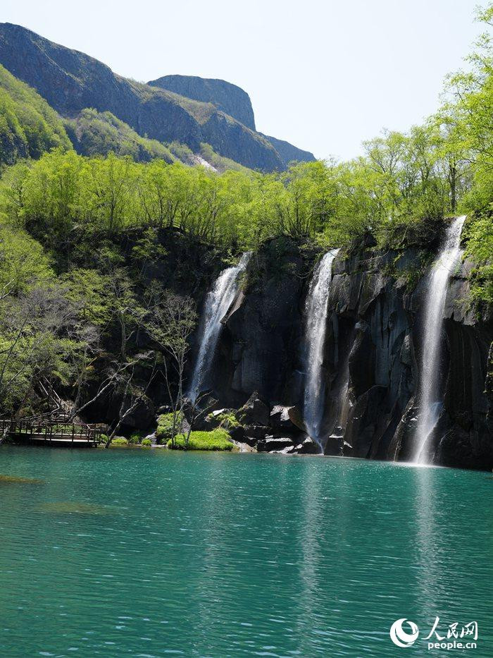 从长白山主峰而下,绿渊潭景区碧绿的水和四周湍急的大小瀑布融为一体,十分壮观。这里被誉为“东北小九寨沟”,空气格外清新,富含丰富的氧离子。环境适时检测栏(大屏幕)显示含氧量2.8万多,游客们置身其中,就像开启了一场“洗肺之旅”。