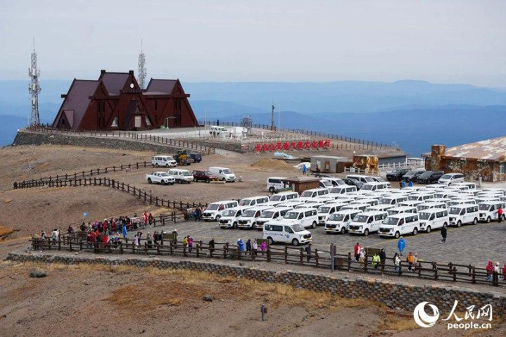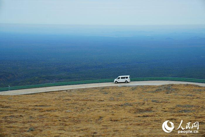 通往长白山天池的公路上,远眺是茫茫的长白林海。人民网记者李洋摄