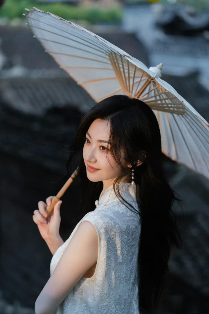 景甜白旗袍油纸伞, 江南水乡演绎古典温婉美人