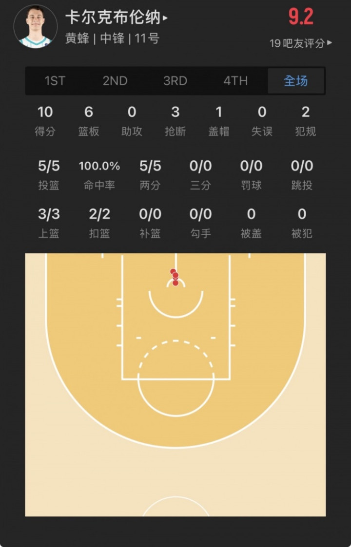 黄蜂34号秀瑞安-卡尔克布伦纳登场30.9分钟