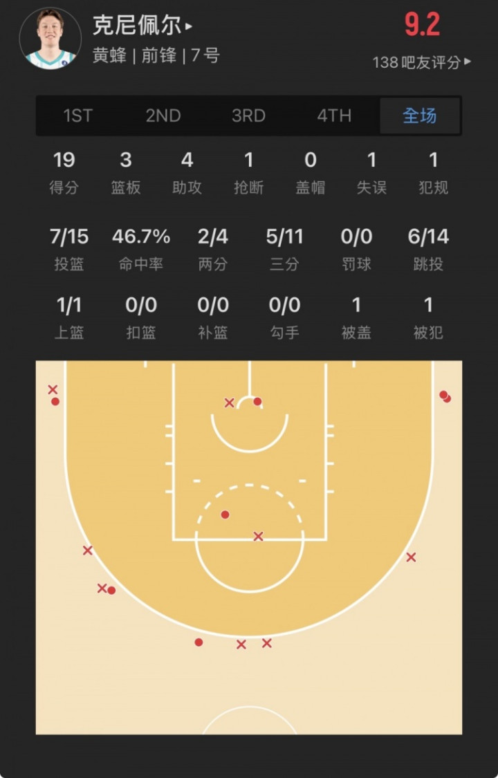 [菜鸟]黄蜂4号秀15中7砍19分+34号秀10分6板3断 埃奇库姆14+6+4