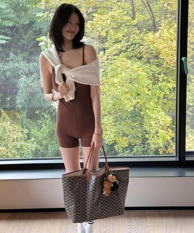 何穗晒的都是穿瑜伽服的照片,有连体的吊带短裤款,也有分体长袖长裤。先来看修身的短款,何穗腰腹扁平,四肢纤细瘦长,完全看不出刚生完孩子,产后恢复真的是又快又好。