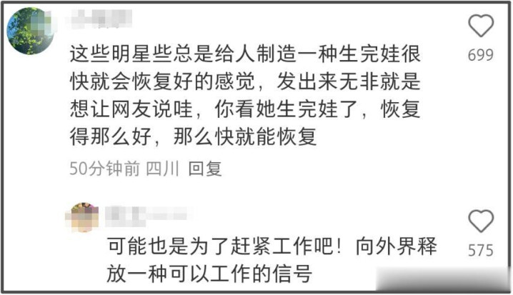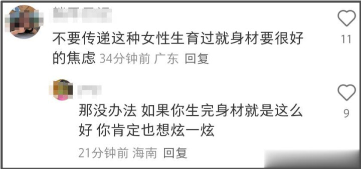 不过,有网友认为何穗不应该刻意展示身材,容易引起普通人身材焦虑,传递出女性生育后也能保持好身材的错觉。何穗是模特,生产结束几个月,保持好身材也是释放复出的信号,毕竟模特的工作就是看身材状态,所以不建议普通人把何穗当学习对象。