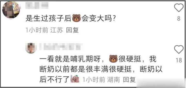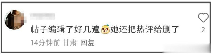 不知是哺乳期亲喂被发现还是照片太暴露,何穗针对发文进行了多次编辑,不仅删除了一张苗条丰满的全身照,还删除了热评,有网友表示她删除的内容是“趁着胸大赶紧多拍两张”,由此看来,她还是介意自己的好身材是因为哺乳期,所以小心思被指出后觉得尴尬,可以说炫耀好身材是人类天性,何穗不必这么敏感啦。
