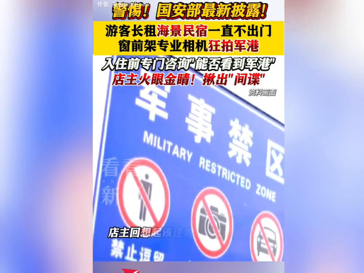 警惕!国安部最新披露!游客长租海景民宿一直不出门,窗前架专业相机狂拍军港,入住前专门咨询"能否看到军港",店主火眼金睛!揪出"间谍"。